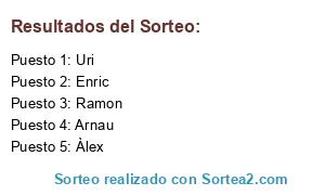 Lista de participantes: Àlex, Ramon, Arnau, Enric, Uri.