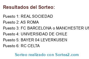 Lista de participantes: AS ROMA, BAYER 04 LEVERKUSEN, RC CELTA, REAL SOCIEDAD, UNIVERSIDAD DE CHILE, FC BARCELONA o MANCHESTER UNITED.