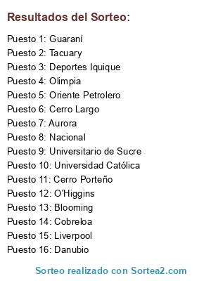 Lista de participantes: Danubio, Olimpia, Deportes Iquique, Nacional, Blooming, Universidad Católica, Guaraní, Oriente Petrolero, Liverpool, Universitario de Sucre, Aurora, Cerro Largo, Tacuary, Cobreloa, O'Higgins, Cerro Porteño.