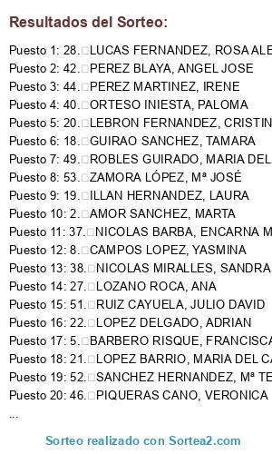 - Puesto 27: 1. ALONSO LOPEZ, ANA MARIA