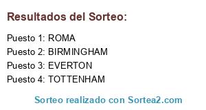 Lista de participantes: BIRMINGHAM, EVERTON, ROMA, TOTTENHAM.