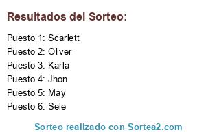 Lista de participantes: Sele, Jhon, Karla, May, Oliver, Scarlett.