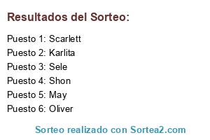 Lista de participantes: Shon, Karlita, Sele, May, Scarlett, Oliver.