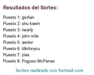 Lista de participantes: Pugoso McPenes, shu kieeh, ziex, nearly, awitor, gorlian, tilloforyou, john mile.