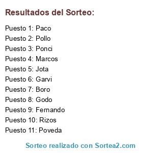 Resultados del sorteo: