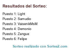 Lista de participantes: VaisenikMsM, Roner, Wizkhalifa, Zangue, Felipe, Faell, Beowulf, Light, Lobo, Demonio, Golo, Harley, Samudio, Bartolomel.