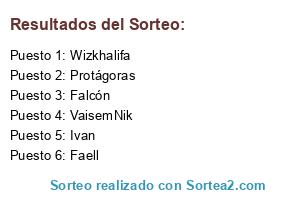 Lista de participantes: Faell, VaisemNik, Wizkhalifa, Falcón, Protágoras, Ivan.