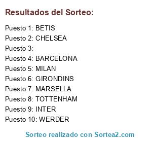 Lista de participantes: BETIS, MARSELLA, INTER, BARCELONA, WERDER, TOTTENHAM, GIRONDINS, CHELSEA, MILAN, .