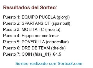 Lista de participantes: PAKOS C.F (CriStaL) , RACING KIWERINO (k!w!) , FUTBOL MALAGA (jcasensio82).