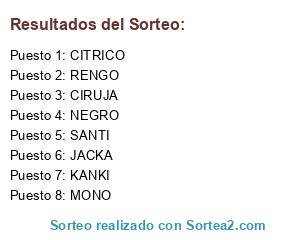 Lista de participantes: RENGO (9), NEGRO (8), CIRUJA (7), CITRICO (6), JACKA (5), MONO (4), KANKI (3), SANTI (2), KBZ (1).