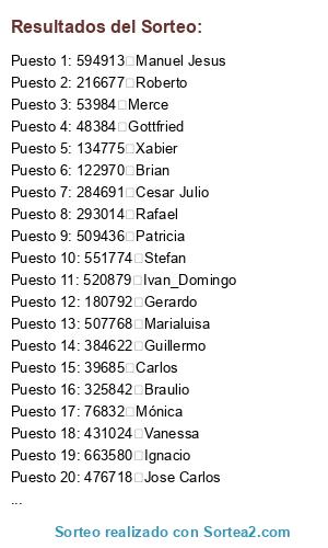 Este sorteo ha sido certificado por Sortea2. Sortea2 garantiza que: