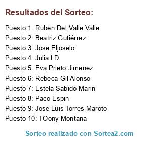 Lista de participantes: Abigail López, Adoracion Perez Nieto, Adrian Autorrelleno, Adrian Rivas Rodriguez, Adrian Rua Lamelas, Africa Saez Chamizo, Ainhoa Aguiar Martín, Aixa AR, Alba Rivero Martinez, Albert Schneider, Alberto Bayón Fernández, Alejandra Rosero, Alejandro Romero Martin, Alejandro Santos, Alex Ordoñez Apolo, Alfredo Recamal Jimenez, Alicia Molinero Velasco, Almudena Miravete Garcia, Almudena Perez Calvillo, Alvaro Cabido Gomez, Álvaro Herrera, Alvaro Zarco, Amaia Torres Sánchez, Amparo Abad Marco, Ana Belén Donaire Gómez, Ana Bertol, Ana Coll Homet, Ana Isabel Cano, Ana M Fernández, Ana María De Fuentes, Ana Marya Sanchez, Ana Toja Vede, Anamary Alba, Andoni Larrieta Cerrajeria, Angel Aguilera, Angel Mora, Angel Moral Lopez, Angel Perea, Angel Toja, Angela BM, Angeles Garcia Portillo, Anibal Ruiz, Anma LG, Antonio Campo, Antonio Cosin Pascual, Antonio Escudero, Antonio GN, Antonio Luengo Nevado, Antonio Moreno Polo, Antonio Tilton, Antonio Tribaldos, Anxo Puime Moure, Aridani Alvarez Armas, Armando Nieto Conejo, Armando Ogalla Moreno, Ascen Alises, Asuncion Navarro, Azucena Bazán, Barti López Calado, Beatriz Gutiérrez, Beatriz PC, Beatriz Rua Pena, Beatriz Tre, Belén Alonso, Belinda Pinero Sánchez, Bernar Rivera, Borja Bresò Bravo, Borja Hernandez Miranda, Brian Diaz, Brs Sergio, Candela Hip Ladelri, Carlos Gfr, Carlos M Sanz, Carlos Vila Montolio, Carmen Bonafé Ramos, Carmen Luis, Carmen Motos, Carmen PeBu, Carol Adan, Carolina Peña, Casilda Rodriguez Morente, Cayetano MB, Cecilio Jabalera Garcia, Celia Martinez, César Gf Rivero, Cesareo Planton Salguero, Chafik El Haitoti, Charo Alcolea, Charo Hernández Matías, Chelo Molina, Chiquiven RL, Christian Lopez, Cinta Isabel Gomez Diaz, Clara Bajon, Clara Perez, Conchi Blazquez, Conchi Tuero Alvarez, Covadonga Reverte, Cristi Salas, Cristian Hervás, Cristina Canals, Cristina del Sol, Cristina Esteban, Cristina Jardim Rückert, Cristina Massó, Cristina Plana Lopez, Cristobal Gomez, Cristobal VG, Cristobal Villalba, Cuti Garcia Pepiol, Dani Montero, Dani Vázquez Preixens, Daniel Garcia Garcia, Daniel Montero Redondo, Daniel Salmeron, David Chatarrero, David Garcia Hernández, David Gil Jurado, David Hernández González, David Lopez, David Lopez Diaz-mingo, David Sarto, Desiree Lopez Burgos, Diana Peña Delgado, Diana Rodriguez, Dorel Bogdan Dinu, Eduardo Mruiz, Egoitz Iruñea, Elias García Rosado, Emi De Lucas, Encarni Vereda, Enri Garcia, Enrique Muñoz Cuenca, Enrique Rodriguez, Erika Jimenez Perez, Escolastico Garcia, Esmara JurMa, Estela Sabido Marin, Esther Pomar Piña, Esti LV, Eva Arnas Gil, Eva Batet Mayoral, Eva Luzuriaga Villarreal, Eva Prieto Jimenez, Eva RM, Eva Serrano, Fabio Da Costa, Feli Gea Pérez, Felix Jose Prieto Cabezas, Fernando Segarra Taus, Florentina Orviz, Fran J Valero, Fran Jover, Fran Ramos Sanz, Francisco A S Sanchez, Francisco Garcia Jimenez, Francisco Garcia Llamas, Francisco Javier Hernandez Sagrado, Francisco Javier Vazquez Castillo, Francisco Martinez Gonzalez, Francisco Sánchez González, Fredy Fernandez Malnero, Garcia Borrego Sergio, Gema De Alejandro Biedma Gomez, Gian Carlo Paoli, Grego Silvestre, Guillermo Fernandez-peinado, Guillermo Lopez, Hector Diaz Exposito, Ibai Haibai Ibai, Idaira M. Suárez Rodríguez, Iis Clallucyankema Phollepel, Ines Gutierrez Azuar, Inka Prades Vila, Inma Leonardo, Inma Martinez Martos, Iñaki Sanchez Muñoz, Irene Francisca Canudo Cervero, Isabel Camarasa, Isabel Martos, Isabel Noguera Lopez, Isabel Ogarcía, Isabell Castells, Issa Wellsx, Ivan Eseocho, Ivan Suarez Villafane, J Carlos Rubio Prestel, J Jacinto Gonzálezz, Jasmine Serra Montes, Javier Beltran Carceller, Javier Jb Julian De Blas, Jenny Pérez Díaz, JeRo Vallejo, Jeroem Sanchez Mendez, Jessy Cazorla Sedeño, Jesus de Juan, Jesús Martin Gonzalez, Jesús Pérez Cámara, JF Teixeira, Jimmy Offroad, Joan Portells, John Pablo Rodrigues, Jonathan Arance Barba, Jordi De la Fuente, Jordi Romero, Jorge Hervas Perez, Jorge Luis Paoli, Jose Angel Agudo Fernandez, José Antonio Gómez Rodríguez, Jose Antonio Rodriguez, Jose Antonio UH, Jose Aviles, Jose B. Marcos, Jose Barea Montes, Jose Eljoselo, Jose Francisco Carbajo Abad, Jose Luis Dominguez, Jose Luis Fuentes, Jose Luis López Fernández, Jose Luis Lopez Fontanez, Jose Luis Martin, Jose Luis Torres Maroto, Jose Maria Martinez Rodriguez, Jose Martins, Jose Miguel Cortes Pavon, Jose Ramon Gonzalez Ventura, José Ramón Vegas Calderón, Jose RQ, Juan Carlos Gonzalez Duran, Juan Carlos Lozano Moreno, Juan Collado R, Juan Jose Cortes Sanchez, Juan José León, Juan Luis Gomez Casado, Juan Manuel Esteban, Juan Manuel Rodriguez DE Granada, Juan Rubio, Juancarlos Ahijon Gonzalez, Juanma Caspe, Judith Pérez Diaz, Juli Hrdez, Julia LD, Julia Marcos, Julia Mosher, Julian Alvarez Cabrera, Julian Lopez, Julio Martin Arriscado, Julio Santana Gordillo, Kevin Anton, Lara Toral Fraile, Laura Loredana Myrvold, Laura Ruiz, Leticia Monedero Navarro, Letycya González Alvarez, Lidia Tacero, Lili Miau Canals, Lola Pereira Verdejo, Lola Troncoso, Loly Villa, Lorena Garcia Hernandez, Lorena LP, Lorena Perez Monton, Lorenzo Cuevas Coca, Luar Otein Zelg, Lucia CA, Lucia Diaz Albacete, Lucia Elia Rico, Lucía Pereira, Lucia Ruiz Trujillo, Luisa Menargues, Luismi MG, M Luz Arias Nicolas, Macarena Makiald, Maite Sevilla del Pozo, Man Mam, Manu Valero, Manuel Moya Garcia, Manuel Pico, Manuel Rojano Marzo, Marcos Palomo Dominguez, Marcos Yainhoa, Maren Villa, Marga Fernández, Mari A Fernandez, Mari Carmen Castellanos Caballero Castellanos, Mari Carmen Lopez Garcia, Mari Lorenzo, Mari Munin, Maria De Los Santos Peña Delgado, Maria Jose Lopez Alvarez, Maria Jose Molina Reina, Maria Josefa Perez, María Moreno, Maria Noelia Olmo, Maria Rios, Maria Rosa Monton Sanchez, Maria Symbalava, Maria Wasmer Romero, Mariajo Abril, Mariangeles Sales Perales, Maricarmen Seijo, Maricruz Hernaez Martinez, Marilo Lombardia Melendez, Marina Ramos, Mario Carmona Morales, 