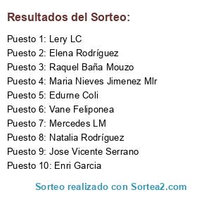 Lista de participantes: Lourdes Dinares, Sonia Perez, EstheryBastien Michel, Maria Vargas, Pepi Mesa, Sandra Pérez Izquierdo, Rosa María Alvarez Lagrava, Sus Vic, Alberto Bayón Fernández, Mediero Maria Jesus, Salom Villa, Rosario P Cruz, Mercedes Gutierrez Rodriguez, Gabriela Adriana Costache, Cris Galarza, Noelia LM, Monique VL, M Carmen Plus, Mayka Sainz, Lara Galan, Alejandra García Barreiro, Victoria Alon, Pilar Díez Rico, Emily Raymon, Cristina Solanas, Yolanda Sánchez, Gabriela Gebo, Pilar Glez, Teresa Santiago, Francisca Trias Torrens, Sonia Gallardo, Lola Vicente, Laura Murillo, Lola Esteban, Jesica Marinelli, Susana Martínez, Silvana Gopes, Maria Pilar Ortiz, Raquel Ortiz Rubio, Leticia Toledo Buceta, Myriam Graciela García Cazorla, Carolina López, Carmen Usó, Nuria Navarro Garcia, Patty Lilo, Andrea Soto, Sara Barquilla Vizcaino, Carmen Cano Molinero, Patri Díaz Sancho, Montse Prieto Rodriguez, Rosa Exposito, Esther Marcos Herrero, Lorena Cortés, Carmina Torres Codina, Ester Mosquera, Brooke Davis, Maria Pilar Pes Torres, María Qué Más Da, Montserrat Herrero Perez, Inma Mena, Montse Fernandez Martin, Fanie Di Natale, Pakyta Mendez Lopez, Vanessa Ogea Navarro, Laura Sánchez, Lorena Lorenix, Mari Carmen Carreño Garcia, Isabel Garrido Terol, Jairo Miguel del Río, Mónica Rubio Garcia, Mari Sol Romero Romero, Juani Gil Melero, Maria Martinez, Jose Aranda, Lourdes Her Mi, Elena Rodríguez, Encarni Diaz, Anabel Nuñez, Marta Sanchez, Maria Macia, Monti Gomez Amores, Inés Rey, Victoria Moreno, María Flórez, Ana Martínez Olóriz, Cristina Baños Herrero, Cristy González, Carmen Paul Panzano, Ireniya Curranta, Mariano Sáez Montes, Cristina Camacho García, Milka Aguilera, María Martínez Esteban, Sonia Garcia Pastor, Vicen R. Moreno, Hélène Caulfield, Eva Tarjuelo, Isa Rafa, Luis Mangado, Pilar Aranda, Natalia Gutierrez Segura, Jone Jambrina, Cristina Cano, Emy Emy, Ana R Campos-Santacruz, Susana Raton, Susana Azcona, Vanesa Hiraldo Briones, Gina Molinero Olate, Vero Gómez, Alicia Soto Tornero, Julia Juarez, Natalia Bernabé Gómez, Loli Osuna Martnez, Carolina Rodriguez, Carmen Calero Serrano, Susana Barea, Esp Ferrandiz Teresa, Nuria Macías G, Esperanza Rodriguez Arrocha, Valerie E. Kramer, Georgina Vega, Loli Salinas Terrón, Ana María González Otero, Maria Guestardo, Sheyla March, Tamara Oliveira López, Alfon Castillo, Mar Cruz, Melissa G CH, Maite Frechoso Diez, Pilar Cabre Rubio, Au Revoir Cristina, Maria Torrens Colom, Anastasia LF, Shila Almira, Veronica Ferreira, Julia Maria Alonso Martinez, Cintia Cedro Lopes, Gloria Urquidi, Gemma María Lara, Mercedes Gonzalez Lima, Pepa Diez, Maria Elena Rodriguez, Anamary Alba, Laura Laura, Vanesa Vazquez, Vanesa Valencia, Marta Montaña Alvarez, Lery LC, Rafaela Celi, Sonia Rico, Carmen Llano Pérez, Mayte Garcia, Marta Azcona, Yoanna Alonso, Inés Diaz, Maria José Gil, Aurora Seijas Folla, Marivi Perez, Esther Pomar Piña, Nuria Perez Ortega, Mari A Fernandez, Miriam Mma, Sonia Rodriguez Garcia, Tony Roldan, Mertxe Di Tas, Beatriz Ganado Palacios, Silvia Pérez, Marian PC, Ma Jose Alvarez, Almudena Miravete Garcia, Begoña Diaz Ramirez, Susana Claramonte Aguilella, Farmacia Guillén, Lola Martinez, Pepi Romero Alvarez, Marta Roman, M Arantza Sango, Elena Iv, Maria HR, Tzia Bon-aira, Susana Ordaz Martinez, Luisa Maria Garcia Repiso, María De Los Ángeles Allende, Lola Ramírez, Jose Vicente Serrano, Yolanda Padilla, Susy Garcia Lopez, Romina Schott, Diez Jose Francisco, Luis Carlos Verdejo Cuellar, Mónica Pérez, Noelia Quintana Berciano, Edurne Coli, Francisco Javier Vazquez Castillo, Saioa Torres Echeverria, Ana Igual Lazcano, Angelines Fernandez, Marta Rodrigo, Marta Marsha, Mari Jose Aranda, Mayra Sobrero, Víctor Fernández, Mónica Estadella García, Monica Muñoz Sanz, Sonia Diego, Eva Rodriguez Vargas, Teresa Rodriguez Gonzalez, Vicente Perez, Santana De Belmonte Sarahliz, Sandra De Paz Alvarez, Yolanda Garcia-Vaquero, Abigail Fuentes, Laura Murillo López, Marta Negrillo, Vicente PS, Cori Morales, Ana Braojos Otero, Erika Meco, Jose Ramon Gonzalez Ventura, Carmen Maria Peniza Baz, Adoracion Perez Nieto, Clara Pardo, Virginia Vielva, Flor Canalís García, Lucia Gonzalez Perez, Victoria Veintimilla Santos, CE Fernández, Isa Maqueira, Vane Feliponea, Verónica Arenas Carreño, Patricia Cascallana, Beatriz Maya Barrionuevo, Almu Martín Nieto, Isabel Zahino Rico, Cristina Pons, Carmen Cesar Gatica, Yolanda Maria Castellanos Martínez, Yolanda Maleno Rodriguez, Maria Pilar Rodrigo Hernando, Betty Llensa Bou, Ana Rodríguez Vicente, Maria Jesus Moreno Torreblanca, Neus Bergada Esteve, Roxana Neagu, Virginia Gonzalez Espinar, Carmen Aguilar Avilés, Inma Fernandez, Estrella Dos Santos, Carmen Chamizo, Beatriz Marcos, Tamara Salinas, Maria Jose Perez, Encarni Lopez G, Leticia Garcia Tejada, Afrika Miñon Roldan, Mari Munin, Isabel Martín, Cristina Martinez Garcia, Maria Benito, Eloina Fdez, Alexandra Ruiz, Estefania Cordero Borrallo, Juan Luis Hidalgo, Samantha Carballo Robles, Silvia Pidal, Raquel Sancho, Isabel Gómez, Ana Maria Castillo Pedrosa, Maria Del Carmen, Aina Blasco, Roman Selenkho, Maria Conchi, Susana González Pastrana, Consuelo EF, Marisa Perez Gonzalez, Amparo García, Rmaria Camacho, Ire Canudo Cervero, M Luz Gomez Izquierdo, Darmy Collins, Alberto Vidal, Eguskiñe Gomez Zubiaur, Sylvie Pñ, Maria Dl Mar Montilla Gil, Laura de la Fuente, Mari Carmen Romero, Carolina Roger Manzano, Alicia Andújar Gil, Elena Sacristan, Paulina Maria, Carolina Nuñez Mendoza, Maria Angeles Garcia Garcia, Maria Teresa Fernandez Ferreira, Alba Gonzalez, Elena Knyazhechenko, Ana María Latropical, Pilar Lorente, Encarni Cindado, Isabel Ramón Gabasa, Victor Aparicio, Josefa Ángulo Navarro, Matilde Mahia Pena, Maria Jose Rosello, A Mari Carmen, Estíbaliz Festívaliz, Andrea Sotelo Fernández, Conxi Parrilla Aixela, Maria Jose Romero Marin, Elisa Eme, Noelia Cefegorda, Santi Diaz, Mercedes Carrasco, Ana