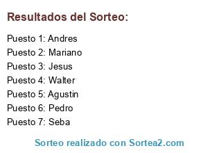 Lista de participantes: Walter, Andres, Mariano, Seba, Jesus, Pedro, Agustin.