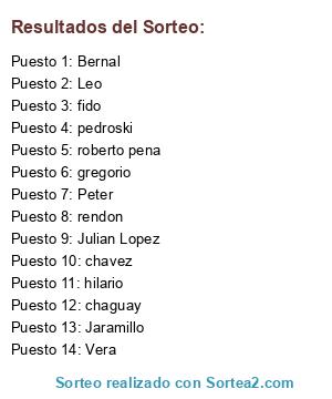 Lista de participantes: chaguay, rendon, roberto pena, chavez, pedroski, gregorio, hilario, fido, Bernal, Leo, Julian Lopez, Peter, Vera, Jaramillo.