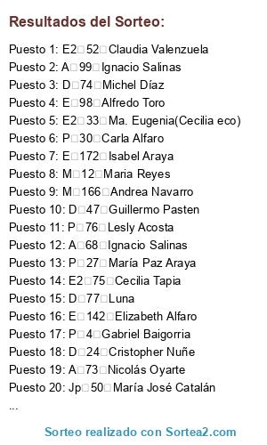 Resultados del sorteo: