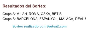 Lista de participantes: BARCELONA, MALAGA, CSKA, BETIS, MILAN, ESPANYOL, REAL SOCIEDAD, ROMA.