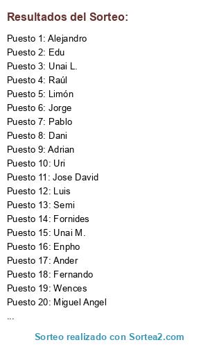 Resultados del sorteo: