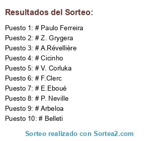 Lista de participantes: # Arbeloa, # A.Révellière, # V. Corluka, # Paulo Ferreira, # Belleti, # E.Eboué, # F.Clerc, # Z. Grygera, # Cicinho, # P. Neville.