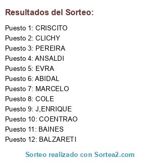 Lista de participantes: COLE, EVRA, MARCELO, COENTRAO, ABIDAL, CRISCITO, PEREIRA, BALZARETI, CLICHY, J,ENRIQUE, BAINES, ANSALDI.