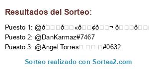 Lista de participantes: @Toxico420#8309, @꧁☆Ⱥnønɏmᵾs☆꧂#5716, @Alexander-#7337, @Brucela_lagueado#6095, @francisco#1330, @Anthony_Zambrano#9800, @Bernard#0721, @Braian Shouth#9328, @BryanG_mieles#4369, @alfar P ⃢C .#3265, @curly#1109, @DanKarmaz#7467, @DaniYt#9110, @El Aquelarre#1516, @XxItachixX#8100, @eleduu76#4827, @Emilson#2997, @Enzo VRt#1783, @Falopero#3320, @Frankv#0590, @dav#7014, @GiGi#8943, @Mr.Ghost21#3107, @DIEGOBABY#3654, @JOHN WICK#1692, @Ignacio#9661, @JacobARG#4720, @Daniel2006#8039, @[Jeff Hardy] ✓ (Axel_Roses)#3035, @๖ۣۜƊⱥℓex☘#4701, @X̸x̸K̑̈ȇ̈v̑̈ȋ̈n̑̈V̑̈x̸X̸#7228, @Jose_Isaac#3412, @JoseIgnacio...#1884, @Juan cruzz#6190, @JulioST#1970, @K U R T#9436, @horacio_perez#8329, @killer1929#0294, @Lauty82#4389, @leonel#3444, @IgnacioRigulon#3064, @Lucas Ezequiel#7777, @Pata_C_o_C#8823, @M A S I T A#0218, @Manaos😼😎#2679, @Mark1#4251, @Martin.#9143, @Martin.#5606, @MatiSlice#6313, @MissancioRM#2434, @ElVladimirPapa#7471, @Moxii.#7009, @MatiasAz#7496, @Sakongamer#6162, @Nico city pa#7210, @Oliver Jane#7652, @PABLO😎😎🤙🤙#8040, @PanchoGames#2620, @Papu26#0187, @Raul Hernandez#5267, @NOVATOIDED YT#2913, @Gaz#3420, @Santillinois™°#5490, @Sebastian_Geretis#7677, @∆¥MACHADO$∆#0973, @Parra.#7454, @Sergio Fredes#1723, @Signatum#1035, @Steve_king#0445, @Tumblaです#4015, @Y3eiims#8115, @☄ BRENES#2492, @ᴺᴳEl César#6660.