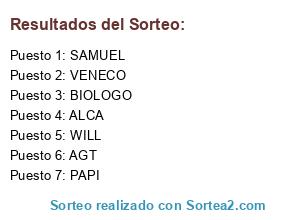 Resultados del sorteo: