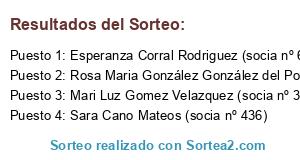 - Puesto 3: Mari Luz Gomez Velazquez (socia nº 397)