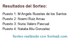 Lista de participantes: M Angels Ruestes de los Santos, Natalia Aliu Gonzalez, Cèlia Prats Roca, Teresa Bigatà Valls, Noemi Ruiz Arnau, Sonia Cortes Gervas, Cecilia Ruiz Moreno, Griselda Charles Soto, Belén Serra Camacho, Cristina Borreguero López, Eva Manau Bofill, Nuria Valero Pascual, Francisco Javier Rosa García.