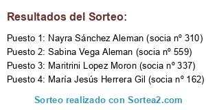 - Puesto 4: Nayra Sánchez Aleman (socia nº 310)