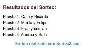 Lista de participantes: Cata y Ricardo, Andrea y Rafa, Maida y Felipe, Fran y cristian.