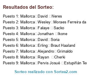 Lista de participantes: Mallorca Daniel James, Mallorca Joe Hart, Mallorca David Neres, Mallorca Benjamin huber, Mallorca Ollie Watkins, Mallorca Álvaro González Soberón, Mallorca Carlos Neva Tey, Mallorca Omar Mascarell González, Mallorca Ross Barkley, Mallorca Orkun Kökçü, Mallorca Jon Moncayola Tollar, Mallorca Mesut Özil, Mallorca Nadiem Amiri, Mallorca Ludovic Blas, Mallorca Ricardo Jorge da Luz Horta, Mallorca Hans Hateboer, Mallorca Oussama Idrissi, Mallorca Kasper Dolberg.