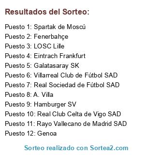 Lista de participantes: Shakhtar Donetsk, Villarreal Club de Fútbol SAD, Real Sociedad de Fútbol SAD, Beşiktaş JK, Fenerbahçe, Galatasaray SK, Sporting CP, Olympique de Marseille, Olympique Lyonnais, Borussia Mönchengladbach, Southampton, Lokomotiv Moscú, 1899 Hoffenheim, Swansea City, Eintrach Frankfurt, AS Saint-Etienne, Stoke City, CSKA Moscú, FC Dinamo Moskva, LOSC Lille, Hamburger SV, Queens Park Rangers, Newcastle United, A. Villa, Genoa, Spartak de Moscú, Málaga Club de Fútbol SAD, Hannover 96, Rayo Vallecano de Madrid SAD, Real Club Celta de Vigo SAD, PSV, Ajax, 1. FSV Mainz 05, Hertha BSC Berlin, West Bromwich Albion, Sunderland, Girondins de Bordeaux, VfB Stuttgart, West Ham United.