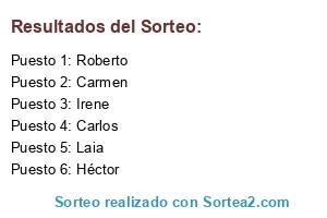 Lista de participantes: Carmen, Laia, Irene, Roberto, Héctor, Carlos.