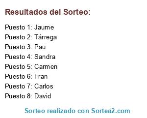 Lista de participantes: Carmen, Jaume, Tárrega, David, Pau, Sandra, Fran, Carlos.