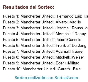 Lista de participantes: Mancherter United Eder Militao, Mancherter United Lisandro Martinez, Mancherter United Alexander Nübel, Mancherter United Roman Burki, Mancherter United Jerome Roussillon, Mancherter United Gareth Bale, Mancherter United Lautaro Martinez, Mancherter United Niklas Stark, Mancherter United Joao Cancelo, Mancherter United Mitchell Weiser, Mancherter United José María Giménez, Mancherter United Frenkie De Jong, Mancherter United Thorgan Hazard, Mancherter United Marcus Thuram, Mancherter United Alvaro Vadillo, Mancherter United Memphis Depay, Mancherter United Fernando Luiz (Fernandinho), Mancherter United Shon Weissman, Mancherter United Adama Traoré, Mancherter United Jonathan Bamba.