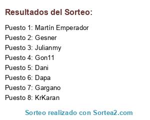 Lista de participantes: KrKaran, Martín Emperador, Julianmy, Gargano, Dani, Gon11, Dapa, Gesner.