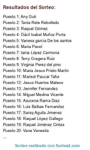Lista de participantes: Rosi Zarate Delgado, Susana Garcia, Frances Dorp, Mildred Caicedo, Carmen Arias, Luis Sanchez Vazquez, Llanos Picazo Iniesta, Claudia Marinela, Jose Angel Martín Escalante, Aity Romero Gil, Esther Hernandez, Isabel Ruiz, Mihai Lukacs, Florentina farcas, Jose Ariza, roxy céspedes, Mari Carmen Pérez García, Andreea Alex, Rosamaria Ambrona Diaz, Esther Justicia Montes, Cristina Blanco Rocamora, Asun García, Nieves Fernandez, Beky Beky, Luis Prieto, María Alonso Hervas, Natalia Padilla Zafra, Virginia Perez del pino, Maribel Rivera, Cristina Negrillo, Alberto Leva Santalla, Lucia Ruiz Trujillo, Ana María Gómez Frías, Isabel Benito, Miguel Angel Yagüe, Yoli Silván, Loli Pérez-olivares Díaz, Beatriz Garrote Cuesta, evagus morales sanchez, Elba Gutierrez, Beatriz La de Fuenla, Raquel Costa Gonzalez, Sonia Parra Valverde, Albaraca Chill House Coffe, Marcel Si Maria Pop, Laura Puerta Diegues, Traver Pacheco Sanchez, Josete Perez, Elena Martínez Fernández, Jennifer Fernandez, Israel Vitores Manzano Cristina Paredes, Manuel Martin Canto, Altea Lopez, Sandra Novoa del Valle, Marta Matshen, Prado Ugarte, Cristian Fernandez paniaguas, Sandra Lopez Muñoz, Ana Belén Gómez Polo, Raquel M Ch, Gianina CH S, Gabriel Jose Martinez Montoro, Juan Luis Pariente, Maria Elena Garcia Perez-Cerdá, Lorena Sánchez-Guijaldo Fernández, Carolina Garcia Alcalde, Lidia Armendáriz León, Monica Garcia, Luis Balbas Fernandez, Marisa Rojas Palacios, Tabita Maria Tamas, Susana Sánchez Caballero, Maria Elena Fernandez Hernando, Mary Carmen Villa, Gema Serrano Gonzalez, Nuria Gonzalez, ANGEL ALBARRAN GARCIA, Eva Fsb, Raquel Gonzalez Extremeño, Gerardo Lopez Gonzalez, Patri Cesantes, Tania Rete Rebolledo, Lorena Queipo berbel, Juan Carlos Fernandez Marin, Maricarmen Berbel Roldan, Pilar Leon, Santi Iniesta, Pilar Uguina, Olivier Portillo Perez, Marina Ionita, Mari Carmen Maroto Jimenez, Tamara No Mas, Silvia Langa Palomo, Piedad Olmedo Rodríguez, Ana Gomez, Mati Lamban Tella, Elena Martos, Paz Ontiveros, Jose Luis Martin Martinez, Nessy Bn, Alfredo Pavon Pujazon, Ivan diez polo, Mafertor Torneiro, Dácil Isabel Muñoz Porta, Susimari Garcia, flacara infernului, Carmen Herranz Montoya, María González Borrajo, Maria Isabel R, Laura Pacheco, Eva Sanchez Armenteros, Nadia Sarceda, maria soledad arteaga, Gemma Sandoval, Carmen Dobreanu, Javier Elias Murillo Lopez, Cesar Morales, Estela Rebé Dávila, Elena Sánchez, Tomas Lrb, Selena Camarero Garcia, Laura Martínez García, Begoña Del Rio Guerra, Cristina Ponce Gonzalez, Carolina Sanchez Camacho, Sonia Martin Gonzalez, Terry Gragera Ruiz, Juan Manuel Cano Soler, Rebe González, Javier Martin Curto, Mercedes Garcia Garcia, Paola Panta Pincay, Valia Arteaga, Juan Jose Belvis, Irene Rueda Moya, Arancha Perez Lopez Coca, Miriam Martin, Enrique Mora Martinez, Pilar Pereiro, Edgardo Davalos, M Beatriz C López, Raquel Jiménez Cintas, sav marius ionel, Sara De La Torre, laura lozano Espert, Chema Carvajal, David Ortiz, Maria Lopez Medina, Silvia Villadoniga Gallego, Anabel Clavero Hidalgo, Iria Iglesias, Toñi González, Chabely Garcia Hernandez, Raquel Martín-Borregón Martín, Pepa Ortega, Yo Misma Ana, Bea LadulciBea, Cristina Arevalo Rubio, Sandra Falo, Aranzazu Ortega Casero, José María Pinedo rozalen, Cristina Montes Marinez, Gemma Molina Ruiz, Cristina Yañez Azorin, Beatriz Sanz Herrero, Joaquin Nogales Rolo, Estela Martinez, Marta Brey Rodriguez-Tembleque, Elizabeth LopezLópez, Raquel Gómez, Maria Jose Rodriguez, Flor Petunia, Maria Jose Bayona, David Martínez Vaquero, Manoli Montarroso, Moises Burgos Rojas, Mónica Gutiérrez Gutiérrez, Elena Reina de Santos, Pablo Clemares Clemente, Concepcion López González, Jesus Huertos Mateos, Ana Isabel Garcia Benitez, Monica Gismero Lopez, Teresa Puertas, Rodrigo Enrique Guerra Toapanta, Virginia Chico Ribagorda, Leticia Pérez Rodríguez, David Sanz Zamora, Silvia Nuñez, Marisol Herrera Diaz, Vanesa garcia De los santos, Alberto Santander Martínez, Ana Maria Monge Villegas, Víctor Sánchez, Maria Jaen Saraza, Esther Sin Más, Beatriz Jimenez, Emilia Campo Moreno, Katy Duque Ruiz, Pilar Oliva Huerto, Gemma Martinez, Susana Noa Palacios, Nieves Piñeiro, Rosana Teruel, Ana Lucia Almeida Reis, Geles Lopez Seseña, Elena Verdejo garcia, Ana Dimas, Nuria Cruz Moreno Mancebo, Pili Martín Pardillos, Ali Garcia, Marisol Paucar Tafur, Any Guti, Luna Cotizada, Sophia Sabana Balta, maria jose nuevo cortes, Rosario Sanchez Sandoval, Kari Nieto, Sandra Haddad, Cristina Sanchez Lopez, Eva Medina, Sebas Gallego Garcia, Awilda Pimentel, Mirian Crispy, Concepcion Cañavate Cordobes, Ainhoa De la Rosa, Rebeca Lopez Mira, Amanda Carrasco Portero, Patricia Requena Martin Maestro, Estefanía Ramo López, Monica Rubio Lorenzo, Nuria Lobato, Gema Román, Iliana Falcon Laz, Julio Rendon Berrio, Miguelinho O Popeiro, Isabel Falcon, Pilar Arranz, Monica Garcia-patron, Amalia Navarro Fernández, Mari Garcia Rodriguez, Begoña García Álamo, Mayte Caravaca Cabello, Juan José Acha, Isabel Lopez Moreno, Carmen Rodriguez Ricote, Coni La Grotteria, Miguel Medina Vicente, Ana Tormo Dominguez, Jesús López-Mingo Gumiel, Rocio Perez Fiallega, Ana Mendez, Marta Espeja Garcia, Nuria Calderon García, Naty Otero, Richie Aranda, Andreea Dogariu, Dalie Rivera Vega, Rosa Ros, Patricia Garcia, Mercedes Pintado Cantarero, Luis Andrey Arriola Vassiliev, Elizabeth Velasco, Ivanna JG, ALINA DOBREA, Mercedes Zazo, Arantxa Estrada, Villacis Nina, Mayte Esquina Perea, Pilar Mallagray Sobola, Esther Rodriguez, Vir Nuñez de Arenas, Francisco Joaquin Chamizo Castlla, Sonia Navarro Dominguez, Maria Jesus Prieto Martin, Kris Martinez, Yolanda yo, Ana Maria Alonso Sanchez, Estela Millan Sanchez, Maria Eugenia Fernandez Garcia, Marta Mañanes, Carmen Isabel, Yaime Acosta Martinez, Pedro Sanchez alonso, Medali Sánchez Bendezú, Araceli Perez, Montse Lora Ferrero, Vanessa Gámez, Marta Gonzalez de Blas, Elena Torija Jimenez, 