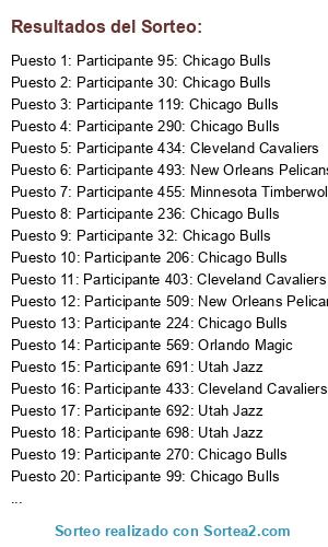 - Puesto 1: Participante 95: Chicago Bulls