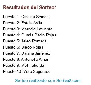Lista de participantes: Diego Rojas, Anabella Soledad Sánchez, Julian Ventura, Bibiana Lagna, Mauro Mago Tartara, Rectlaf Rectificaciones de Motores, Veronica Valdez, Mariano Goñi, Veronica Alejandra, Soledad Lafuente, Sebastian Cebreiro, Guada Padin Rojas, Lucila Callegari, Cristina Semelis, Javier Lezama, Marcelo Lafuente, Antonella Amarfil, Jelen Romera, Daniel Aliano, Jesi Estevez, Mariano Tomatis, Julieta Carolina Krenz, Veronica Jimenez, Vero Segurado, Daiana Jimenez, Andy Coryna Pena, Estela Avila, Briih Romero, Mirta Graciela Suarez, Lorena Ortiz, Meli Taborda.