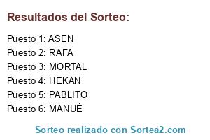 Lista de participantes: MORTAL, ASEN, RAFA, PABLITO, MANUÉ, HEKAN.