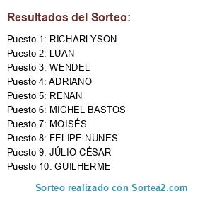 Lista de participantes: MICHEL BASTOS, WENDEL, RENAN, RICHARLYSON, ADRIANO, JÚLIO CÉSAR, LUAN, FELIPE NUNES, MOISÉS, GUILHERME.
