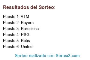 Lista de participantes: Bayern, Betis, United, Barcelona, ATM, PSG.