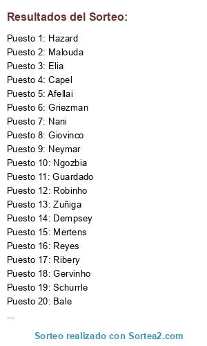 Lista de participantes: Ribery, Bale, Hazard, Nani, Guardado, A.Young, Gervinho, Neymar, Robinho, Giovinco, Dempsey, Malouda, Afellai, Elia, Reyes, Capel, Schurrle, Mertens, Zuñiga, Ngozbia, Griezman, Chamberlain.