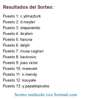 Resultados del sorteo: