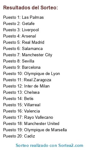 Resultados del sorteo: