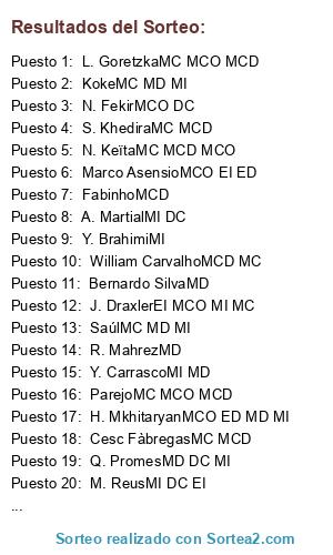 Resultados del sorteo: