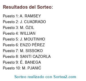 Lista de participantes: J. MOUTINHO, SANTI CAZORLA, É. BANEGA, M. SISSOKO, M. PJANIĆ, A. RAMSEY, M. ÖZIL, WILLIAN, J. CUADRADO, ENZO PÉREZ.