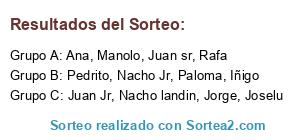 Lista de participantes: Manolo, Paloma, Nacho landin, Joselu, Juan sr, Iñigo, Jorge, Rafa, Ana, Pedrito, Juan Jr, Nacho Jr.