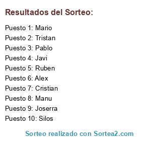 Lista de participantes: Javi, Ruben, Tristan, Joserra, Manu, Pablo, Cristian, Silos, Alex, Mario.