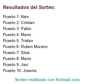 Lista de participantes: Manu, Javi, Pablo, Alex, Mario, Joserra, Cristian, Tristan, Ruben Moreno, Silos.